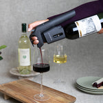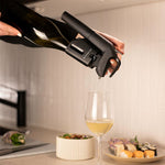 Inclina la botella hasta que la boquilla quede sobre la copa. Pulsa y suelta rápidamente el gatillo para servir. Pulsa de nuevo si necesitas más y vuelve la botella a la vertical para detener el flujo.