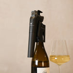 Sujeta la botella con una mano y, con la otra, tira con firmeza hacia arriba para retirar el sistema. Guarda la botella en posición horizontal, en un lugar con temperatura controlada apto para vino.