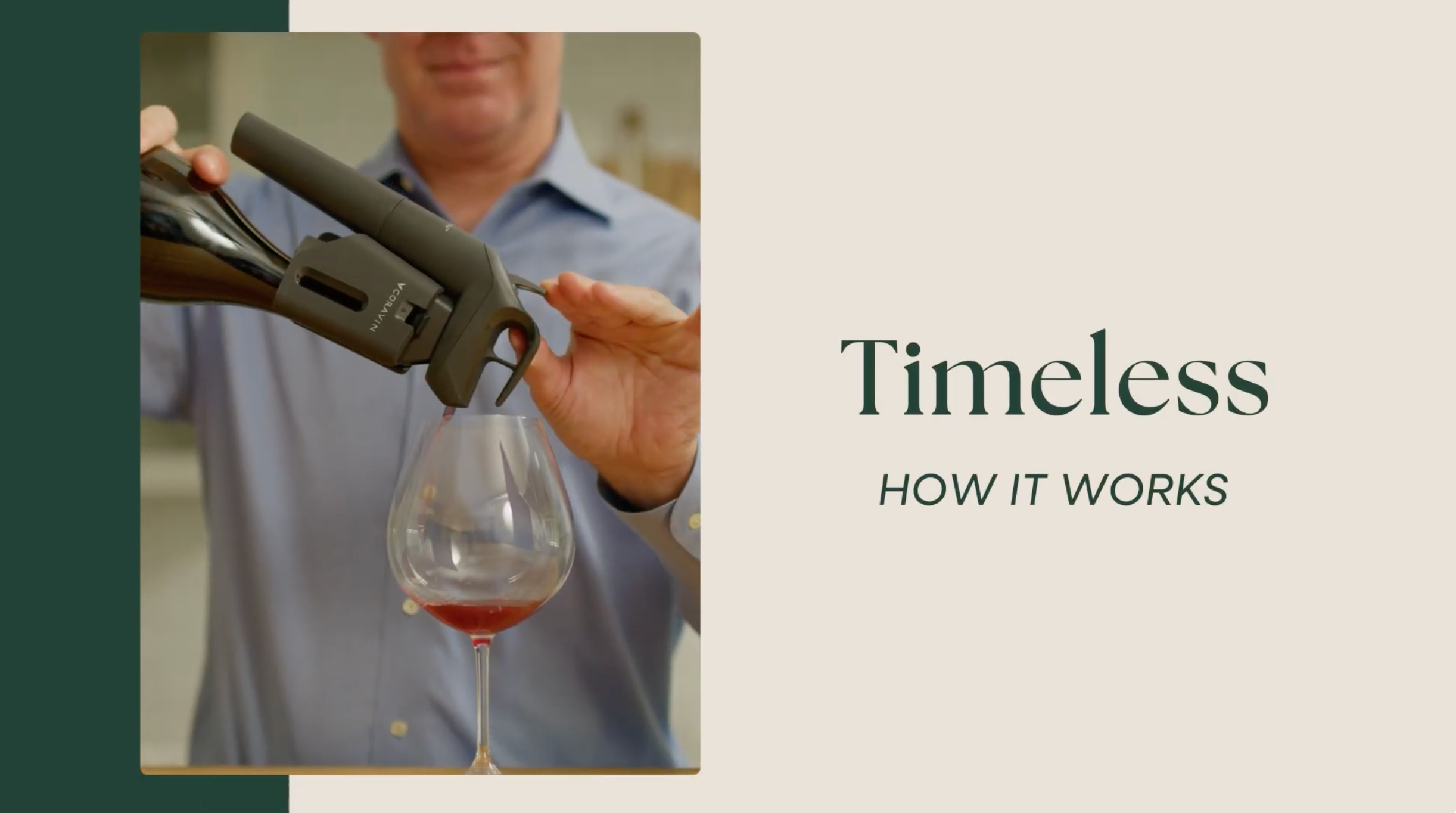 Para garantizar el mejor rendimiento, presione el gatillo durante más tiempo de lo habitual, asegurándose de que el vino se vierte rápidamente por todos los orificios de Timeless aireador.
