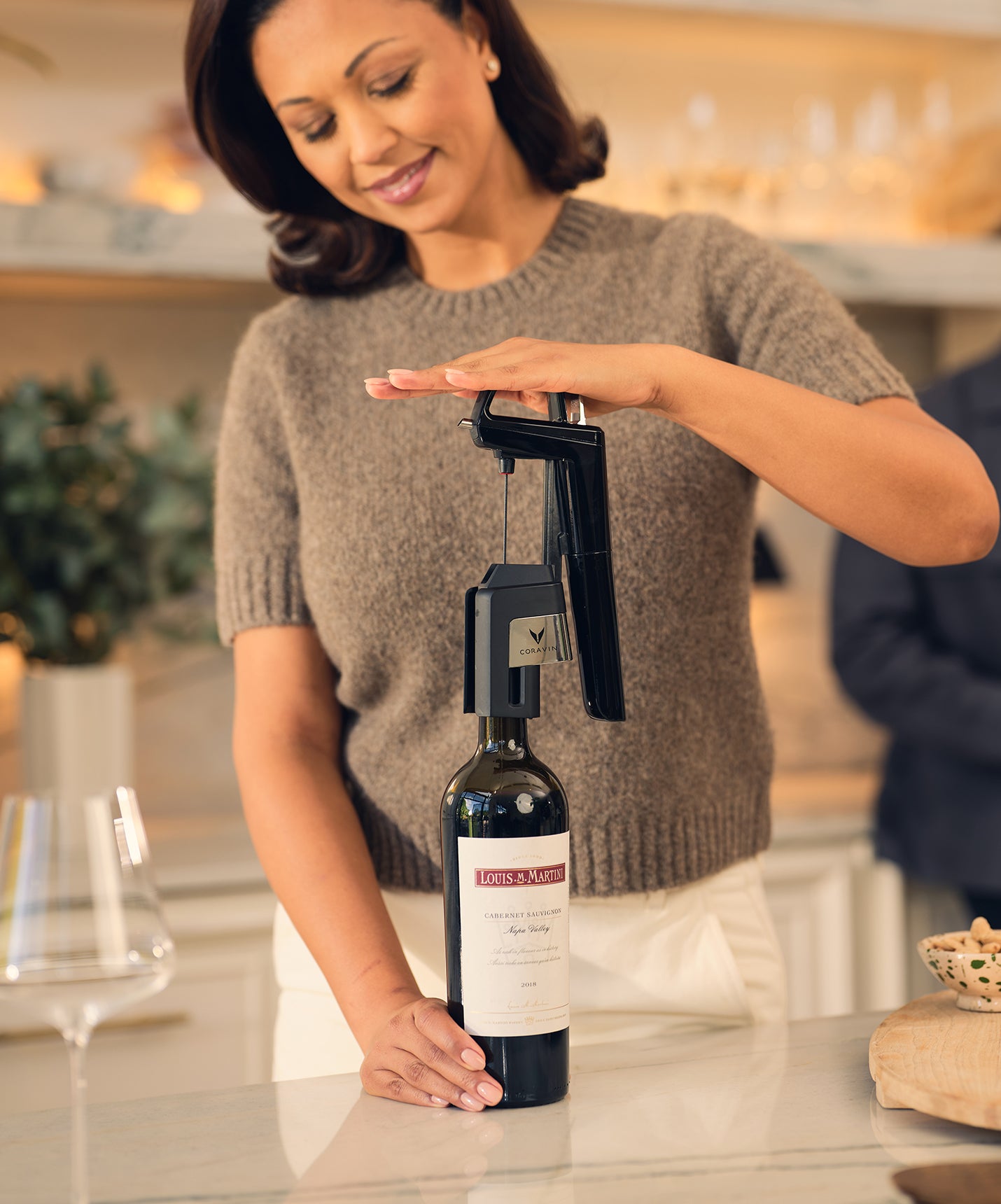 La aguja en el Coravin está descentrada intencionadamente, por lo que la aguja se insertará en el corcho en un lugar diferente cada vez.